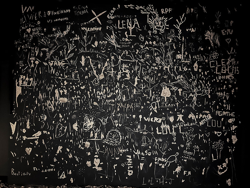 À l’aide des outils mis à disposition (auprès du café ou de l’accueil), chacun peut laisser une trace, dans l’esprit des premiers gestes préhistoriques.
