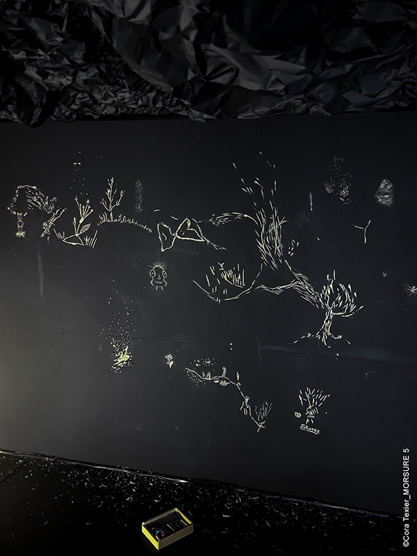 Conception, montage vidéo et voix : Cora Texier | Structure de la grotte éphémère, agencement, coordination et bruitages : Yann Harscoat, l’Archipel, pôle d’action culturelle de Fouesnant | Durée 4 min 59s. © Cora Texier – Morsure #5
